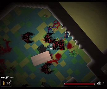The decorations and the whole setting are so vibrant and high in contrast, I love it. The game communicates the idea that rotting away means turning into other forms of life, and it does so really well. Looks like it takes awesome inspiration from Hotline Miami.